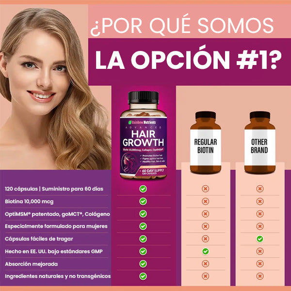 ✅ La biotina en dosis generosa favorece el crecimiento del cabello y ayuda a que luzca más grueso.